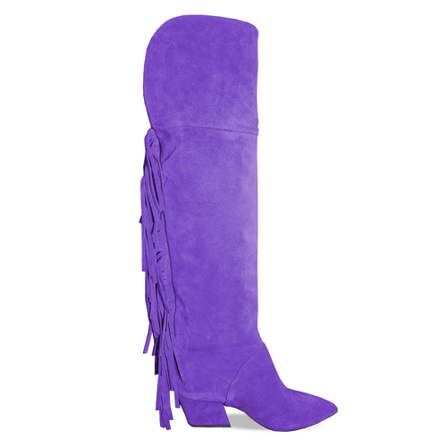 Tubular boot with pointed toe in suede with fringes and medium 60mm heel