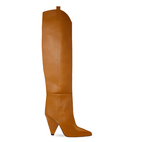 Tubular boot with pointed toe in genuine leather with 90mm medium cone heel
