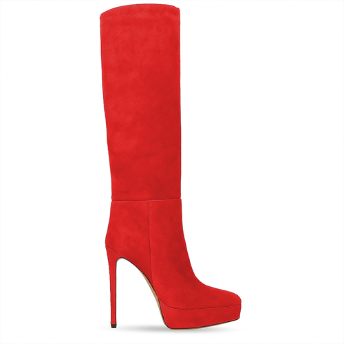 Tubular knee-high boot in genuine suede with stiletto heel and 2.5cm platform