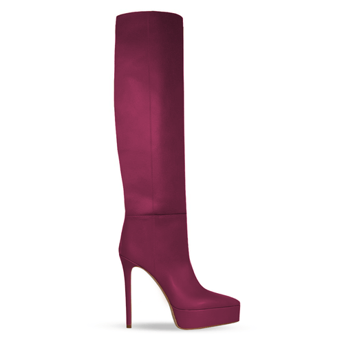 Tubular boot below the knee in genuine leather with stiletto heel and 2.5cm platform