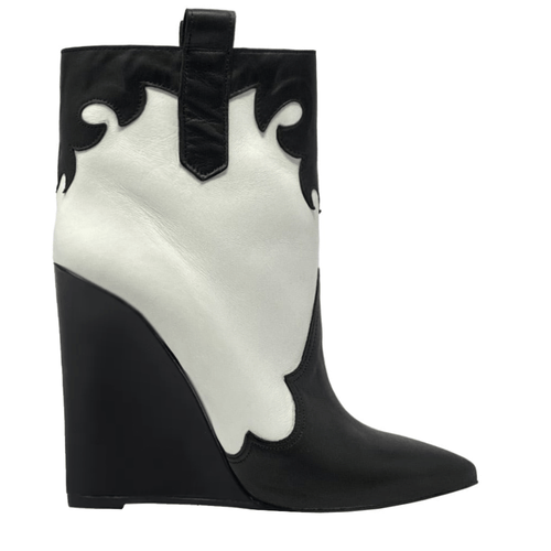 Pointed toe tubular Texan ankle boot in genuine leather with wedge