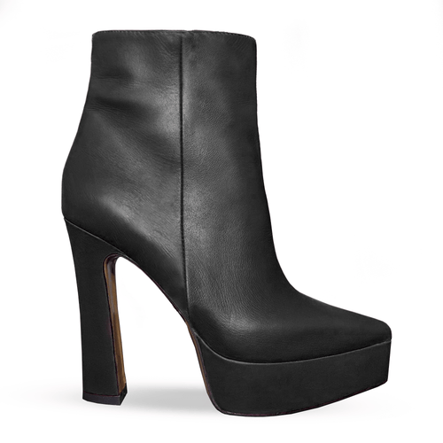 Pointed stiletto ankle boot in genuine leather with internal zipper, 3.5cm platform, and 13cm heel