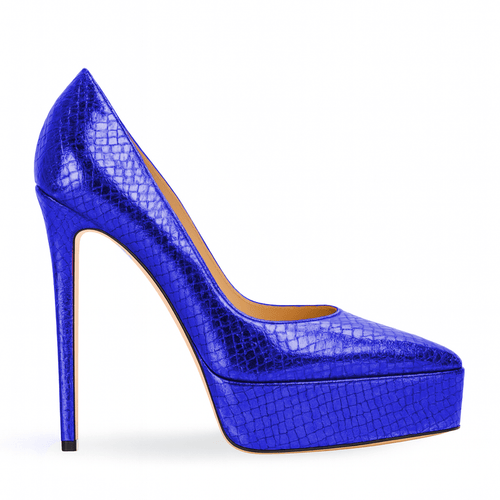 Décolleté a punta con tomaia laminata effetto serpente, plateau da 3.5cm e tacco da 13cm