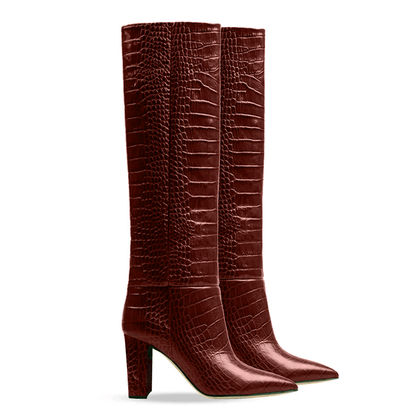 Botte tubulaire à bout pointu en imprimé crocodile avec talon bloc de 90 mm